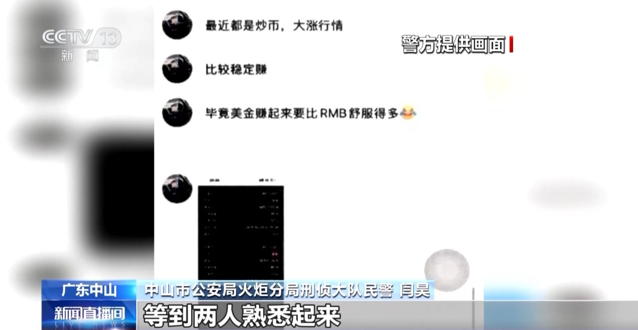 中山市公安局火炬分局刑侦大队民警 闫昊:诈骗分子一上来先跟你聊感情,等到两人熟悉起来。诈骗分子可能会给你一个虚假的网站或者App去进行投资,等你真正充了大量资金进去的时候,你就会发现一分钱都取不出来。