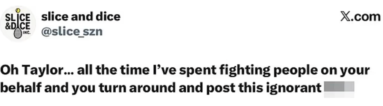 有网友说,“哦泰勒......我一直都在为你跟别人争辩,你却反过来发表这么无知的内容”。↓