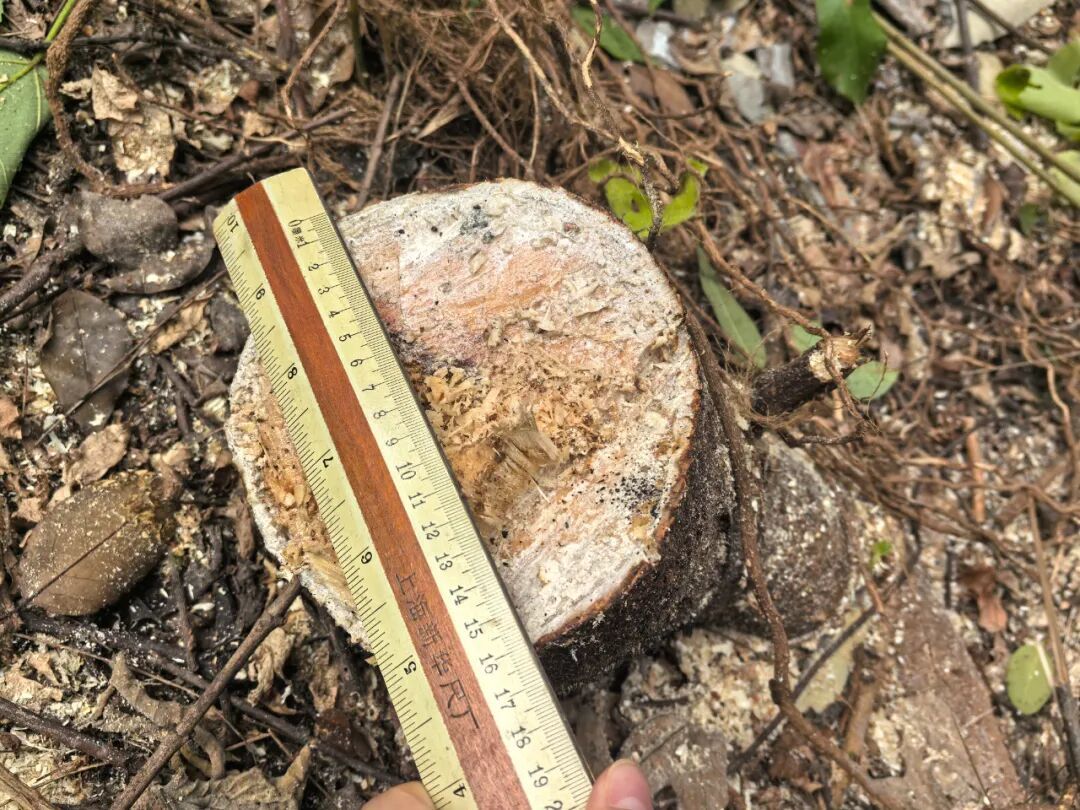 被砍树木树根直径超过10cm,居民在城管部门取证过程中拍摄。