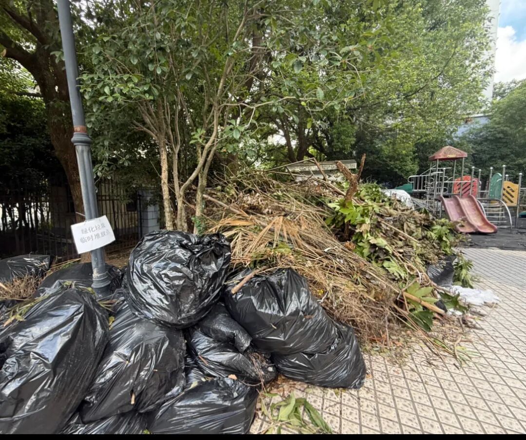 这一解释仍不能解答多数居民的疑惑,无论是朴越物业还是第三方公司,理应熟悉小区绿化修剪的流程和操作,怎会出现如此离谱的“乌龙”?物业对小区绿化负有管理职责,对第三方公司的作业有监督职责,当天为何看到对方砍掉了数十棵树才叫停?在该小区小广场附近,记者也见到了被砍树木的残枝,它们被堆放在小广场一角,多天依旧没有处理,但不少枝干仍郁郁青青,显然不是“病枯树苗”。