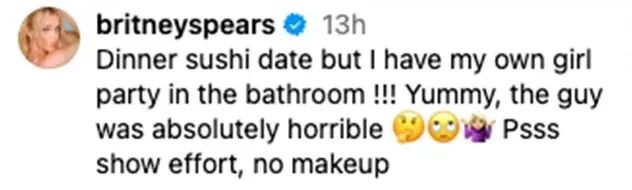 约会对象去哪儿了?布兰妮吐槽,对方“糟糕透了”。