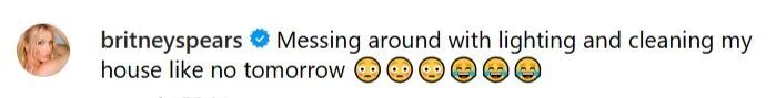 布兰妮本人还回复过:“一边瞎折腾灯光,一边忙着打扫房子,就像疯了一样。”