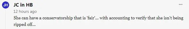 她应该有一个“公平”的监护权,让会计来保证她不会被骗钱。