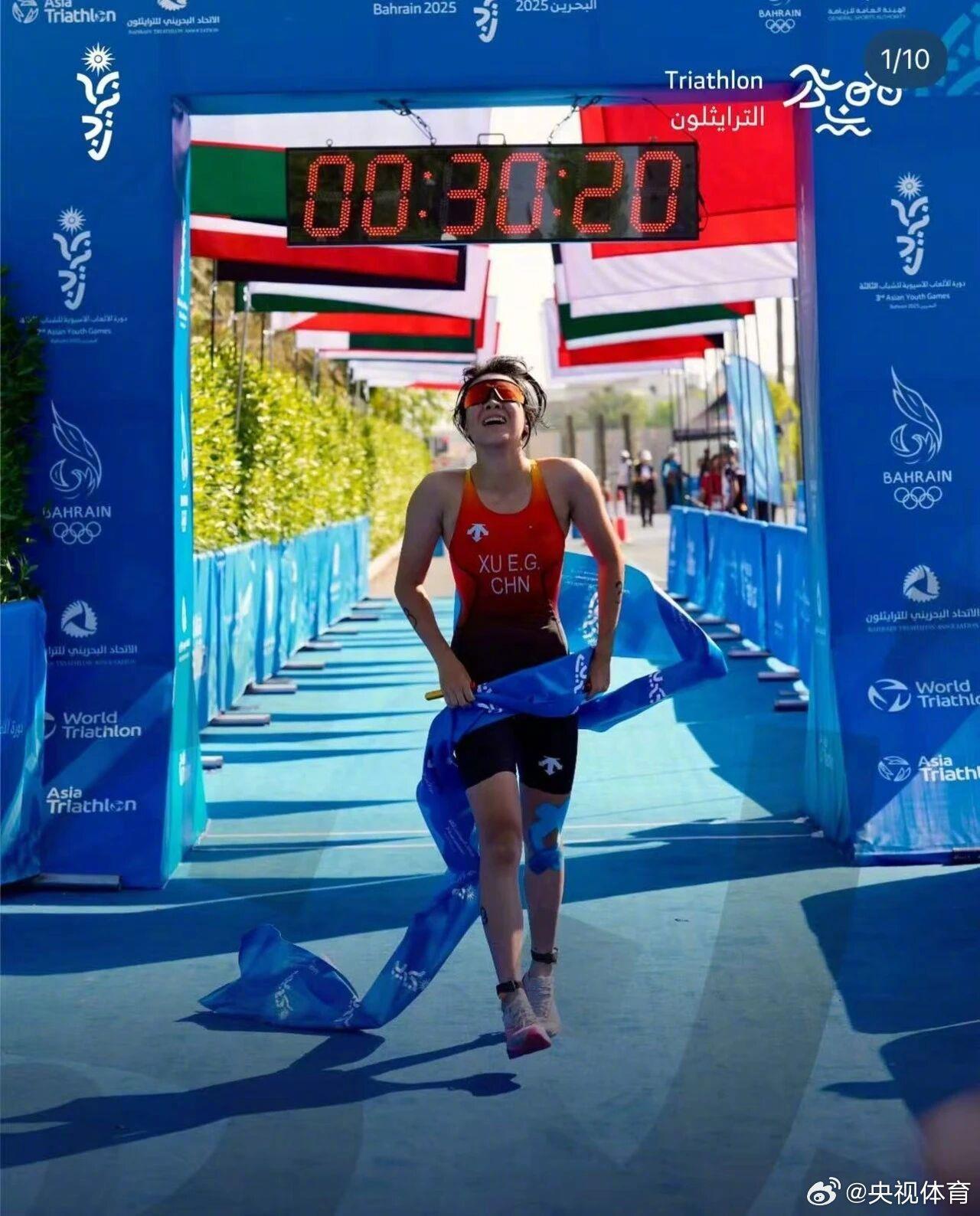 2025巴林亚青会男子铁人三项比赛,李岩松以27分04秒的成绩夺得中国代表团本届亚青会首金。