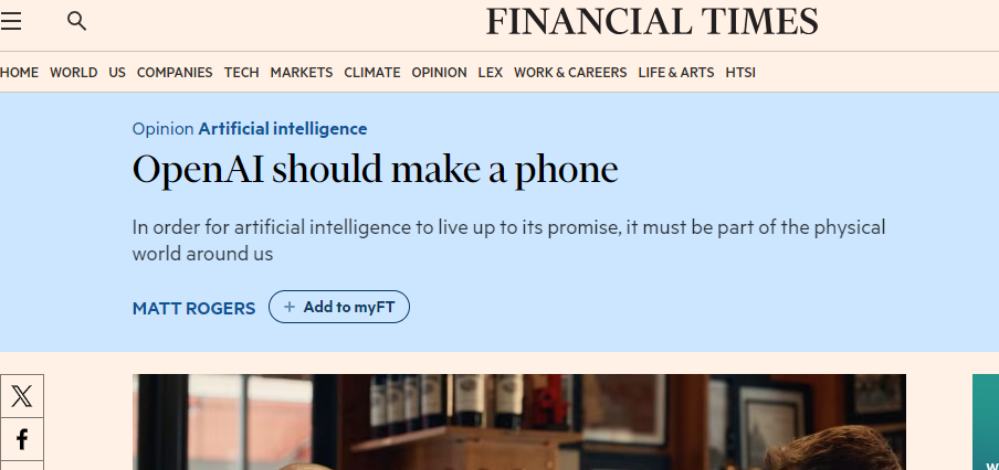 “制造AI手机是2007年以来科技界最艰巨的任务”,罗杰斯总结道,“但要让AI真正融入数十亿人生活,它必须兼容我们已知的世界——这意味着OpenAI需要打造智能手机的下一代迭代产品,而不是花几个月时间打造无法补充或与智能手机竞争的东西。”(旺旺) |