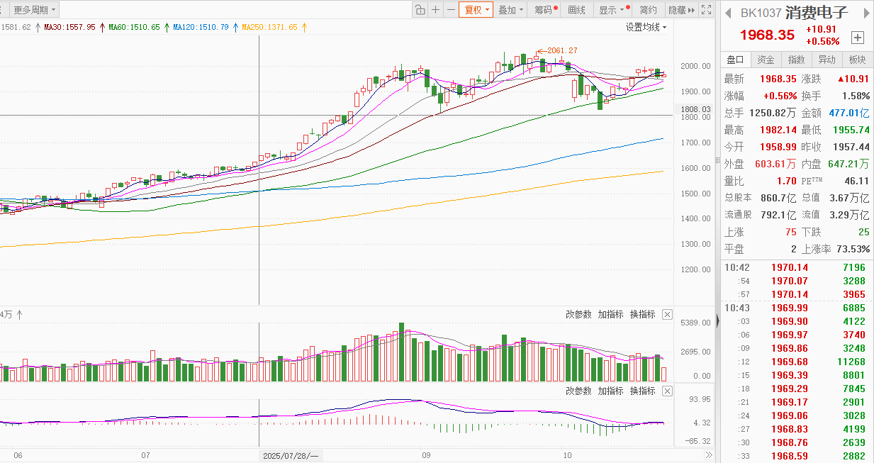 东方财富Choice数据显示,截至10月30日收盘,在市值超百亿的消费电子概念股中,影石创新以年内550%的涨幅遥遥领先,工业富联上涨270%位列第二。隆扬电子、和而泰、奕东电子、长盈精密、协创数据等个股年内涨幅也均在100%至256%之间,板块赚钱效应显著。