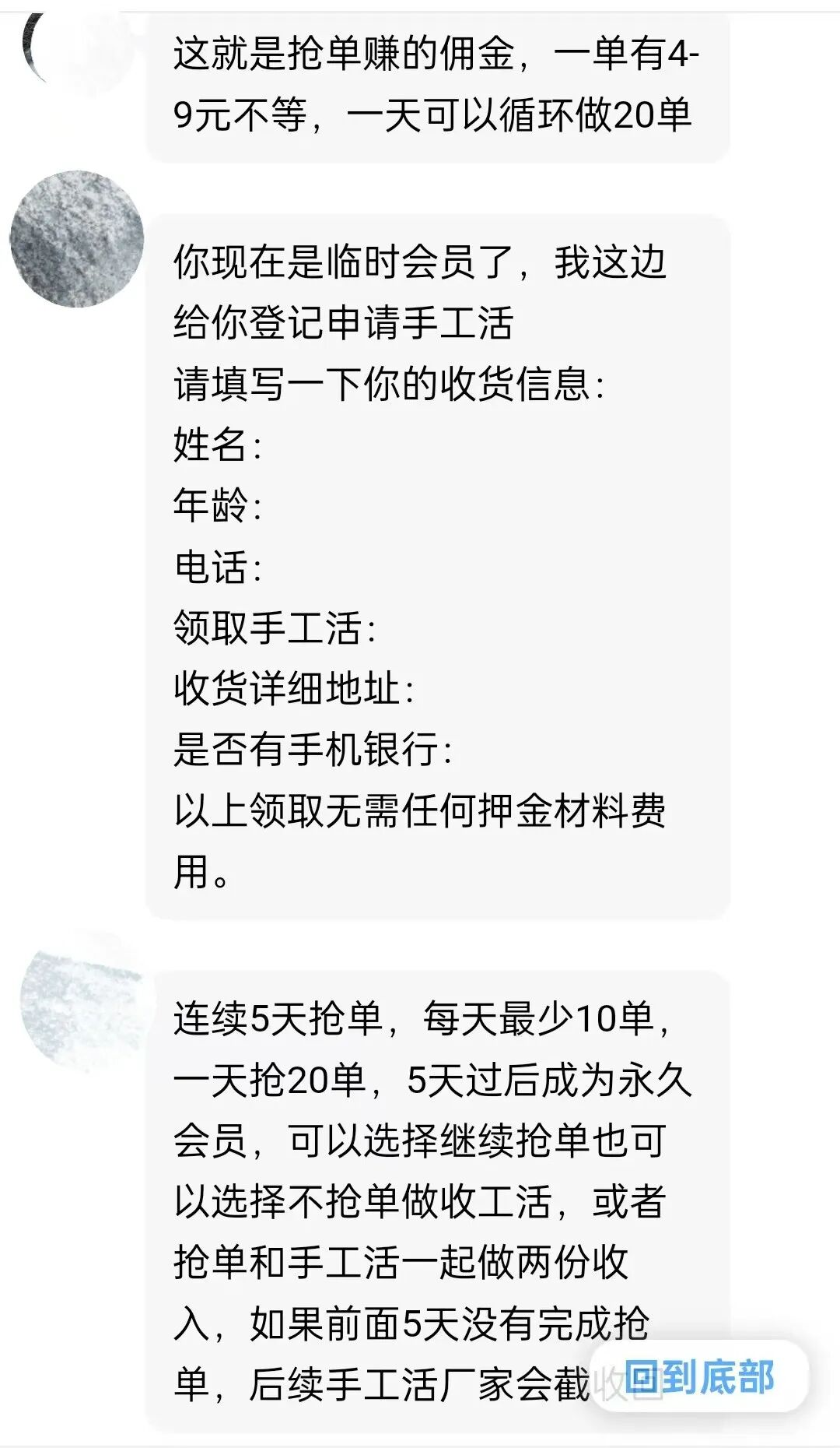 据了解,今年10月初,苏女士在刷手机时看到一则“在家做手工活,多做多拿”的广告,随即下载了指定软件,并加入一个近千人的聊天群。