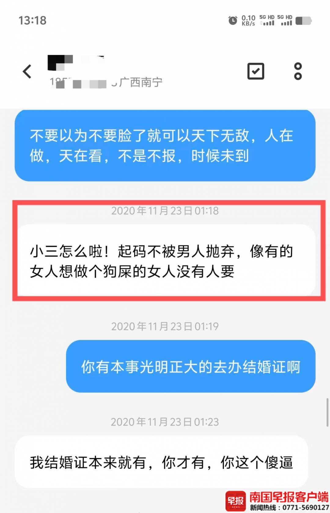 ▲韩女士称,这是田某发短信辱骂她的证据。
