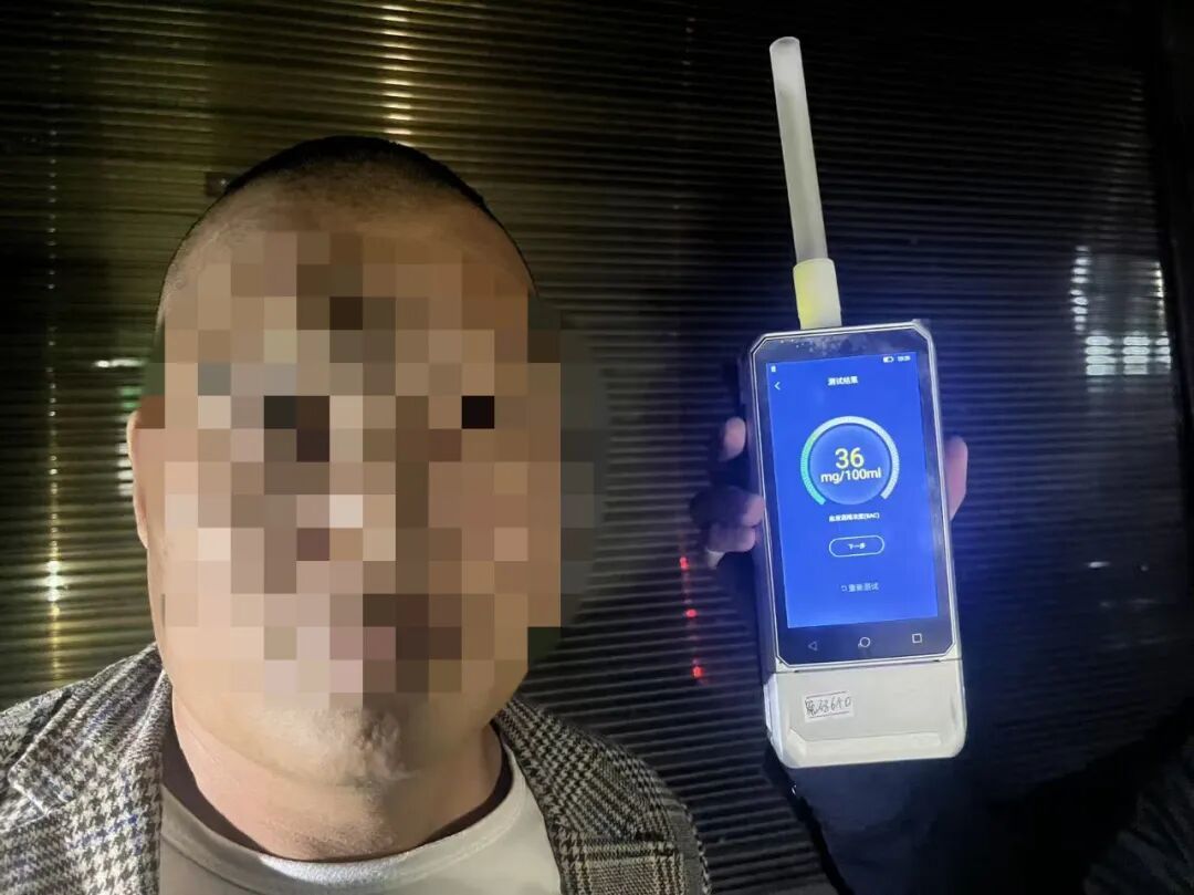 执勤民警利用呼气式酒精检测仪对其进行检测,结果显示其体内酒精含量为36mg/100ml,达到饮酒后驾驶机动车的标准。