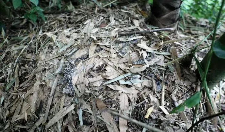 眼镜王蛇巢及留下的蛇蜕。图源:云南高黎贡山保护区保山管护局