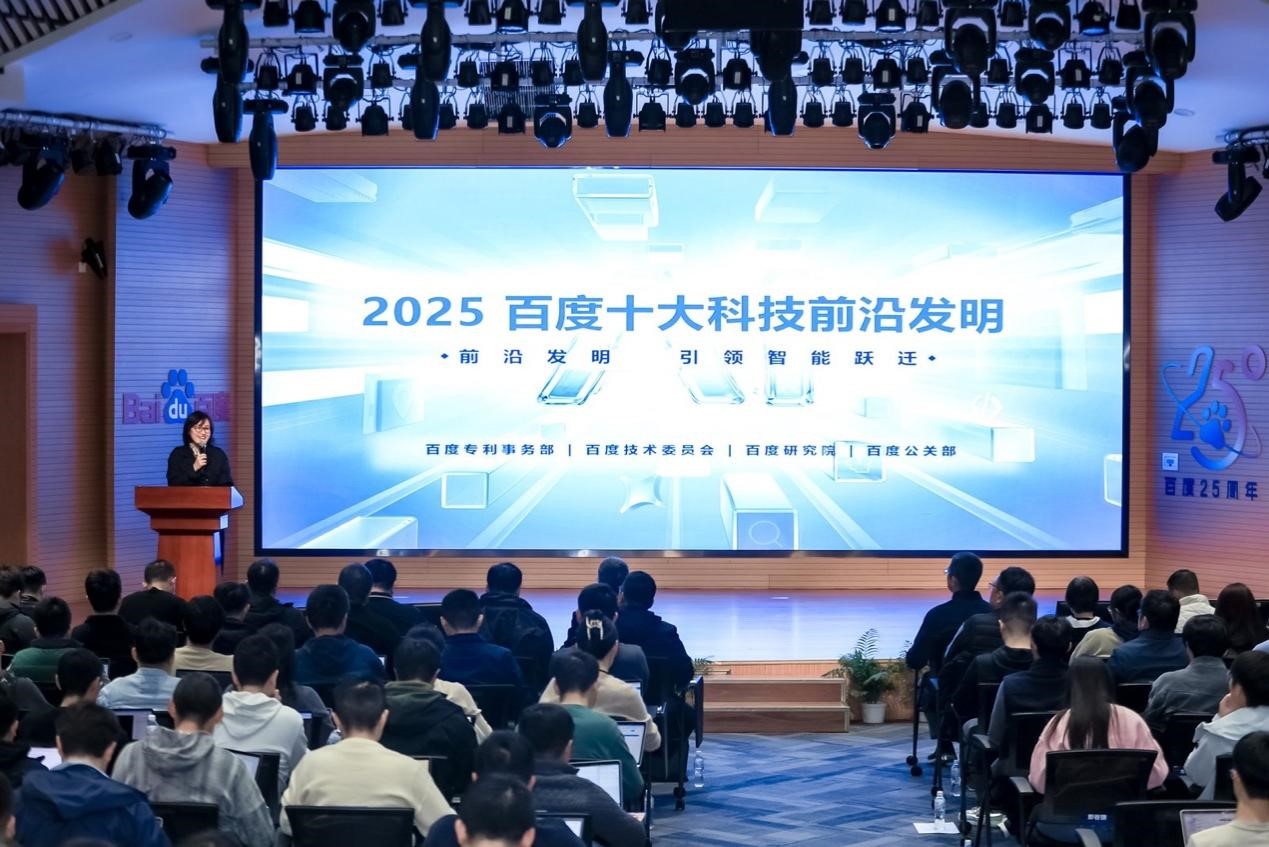 会上,百度专利事务部总经理崔玲玲发布“2025百度十大科技前沿发明”并表示,今年发布的百度十大科技前沿发明,涵盖了人工智能算力、框架、模型、场景应用全栈技术体系。每一项成果,都代表着对技术边界的勇敢突破,彰显着百度在创新道路上的坚定决心与不懈追求。这些前沿技术正汇聚成澎湃的 AI 势能,驱动着生产生活的智能化跃迁。未来,百度将持续围绕关键核心技术攻关,积累自主知识产权,加快专利的产业化进程,赋能千行百业,支撑高水平科技自立自强和高质量发展。