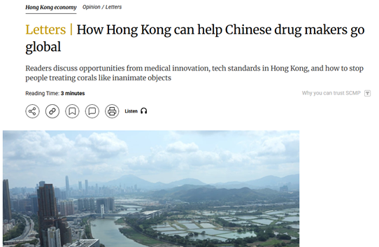 《南华早报》发文称,中国制药企业正在崛起,药研发份额接近30%,创新药入选全球会议摘要增多;香港则有望通过国际化药品监管和中外资药企合作加速临床试验,支持全球药企。