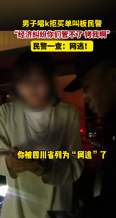 近日,湖北襄阳一名男子在KTV唱歌后拒绝买单,并叫嚣“经济纠纷你们管不了,铐我啊”,民警到场核查发现其为四川省网上在逃人员,随即依法将其带走处理。