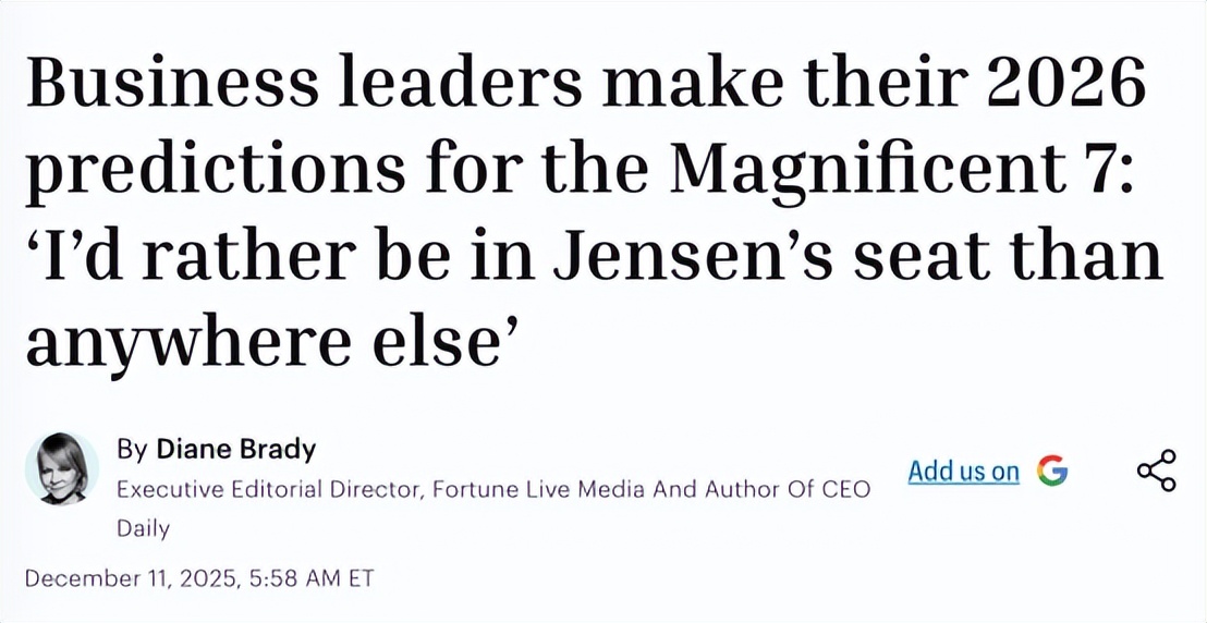 【环球网财经综合报道】据《财富》(Fortune)杂志,随着科技“七巨头”(英伟达、微软、苹果、谷歌母公司Alphabet、亚马逊、Meta及特斯拉)近年贡献标普500指数超半数涨幅,其未来走势引发商界关注。多位商界领袖认为,这七家企业未来表现或将呈现显著分化态势。