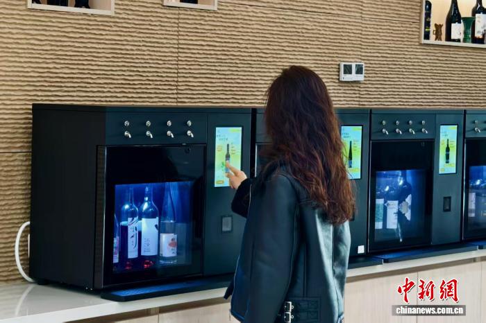 游客在智能自助品鉴设备购买贺兰山东麓葡萄酒。 王婧雅 摄