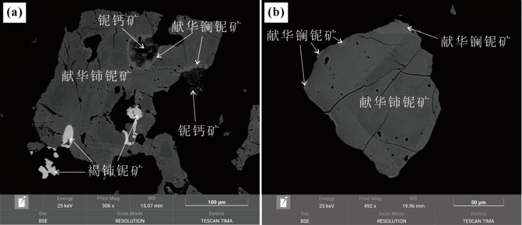 献华镧铌矿及共伴生矿物的BSE显微照片