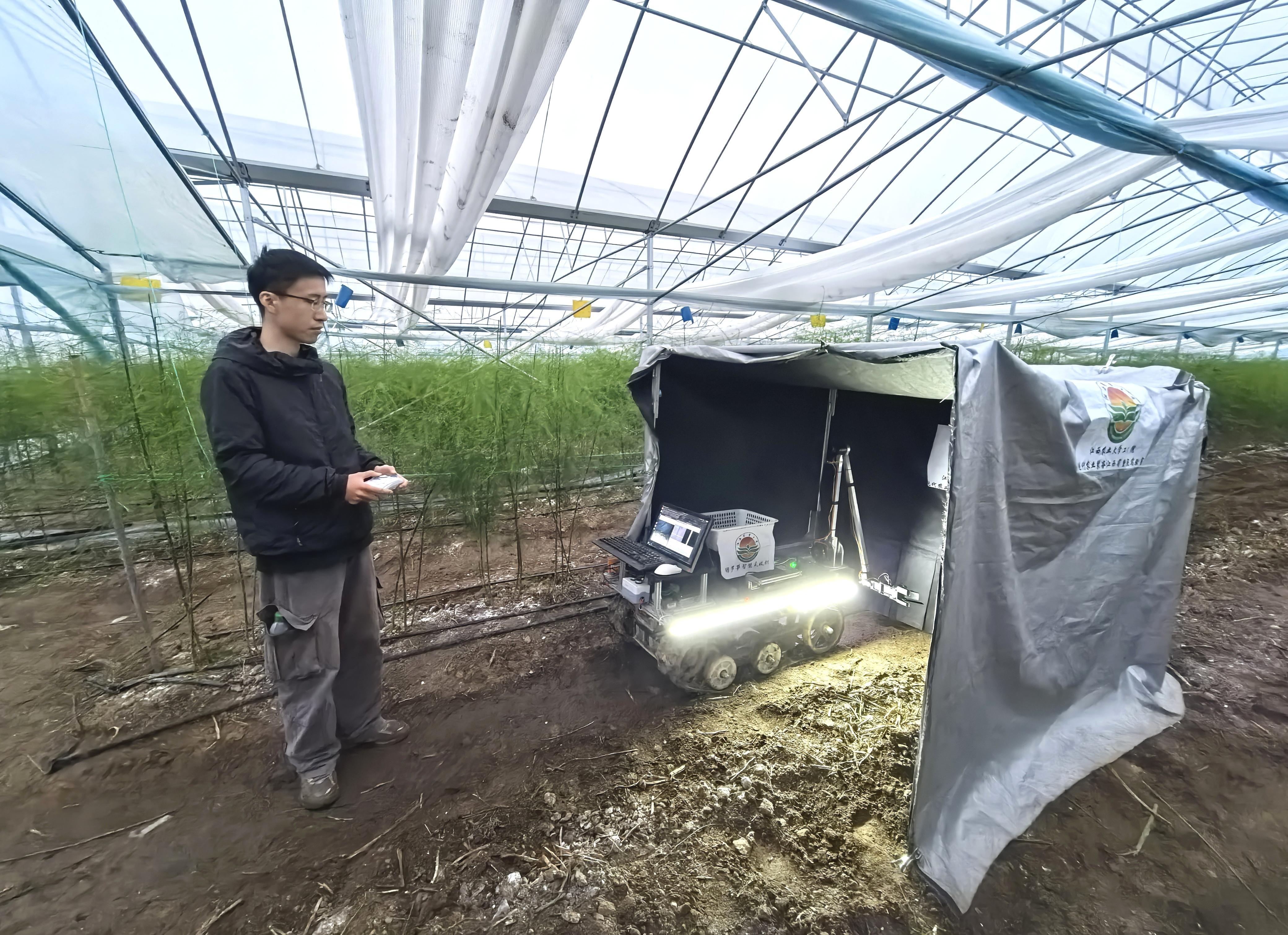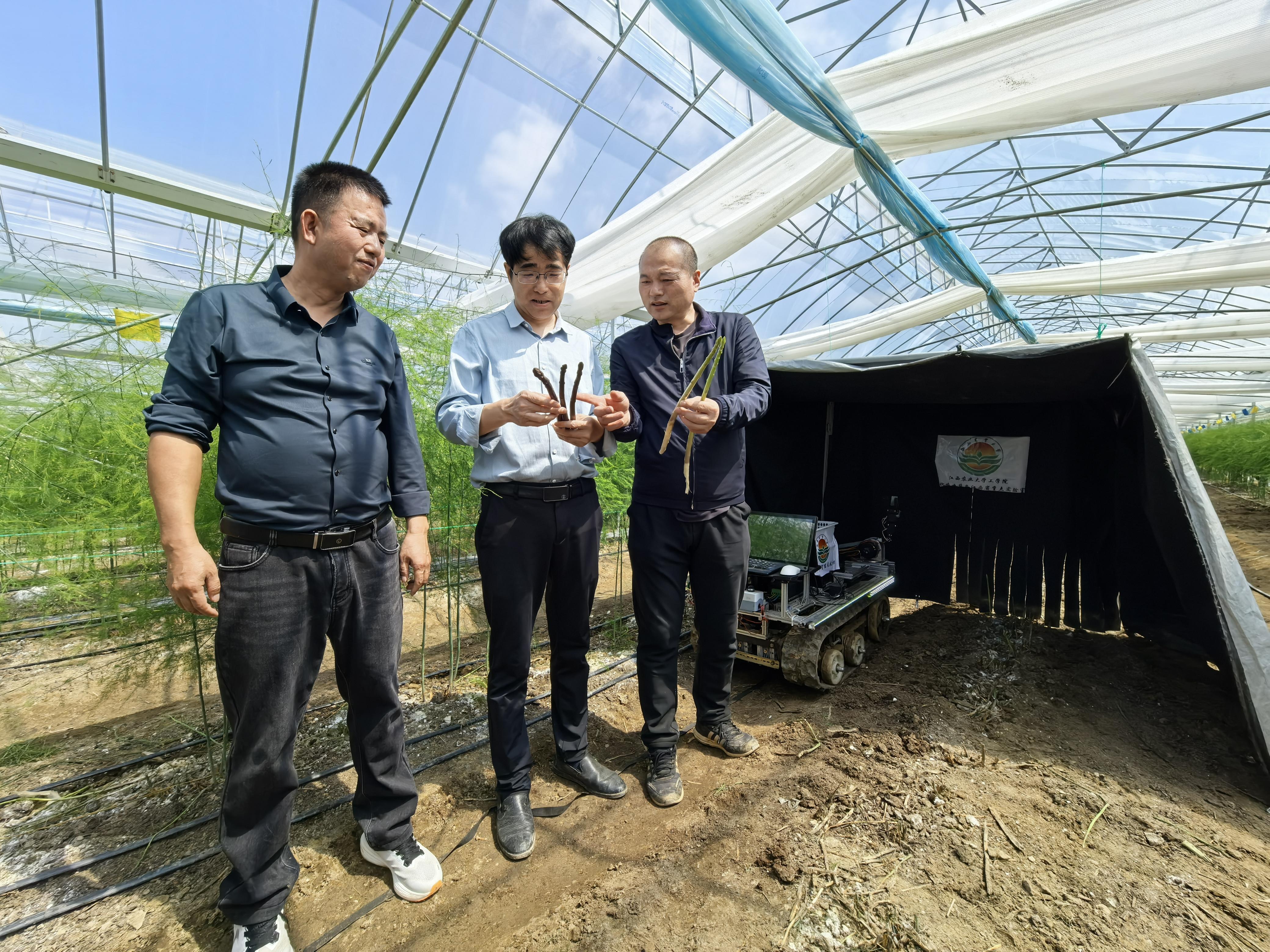 “长期以来,芦笋采收完全依赖人工,种植户需要弯腰一根根寻找成熟宜采的芦笋,再切割采收,劳动强度大、效率低。”薛龙说,面对芦笋产业的采收之痛,薛龙团队进行技术攻关,他们研发的芦笋采收机器人能全自主完成芦笋采收,效率比肩人工,还能精准保护芦笋品相,破解了芦笋采收难题。