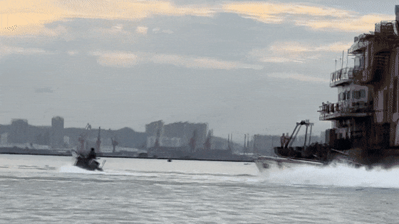 致使执法艇艇身凌空旋转360度