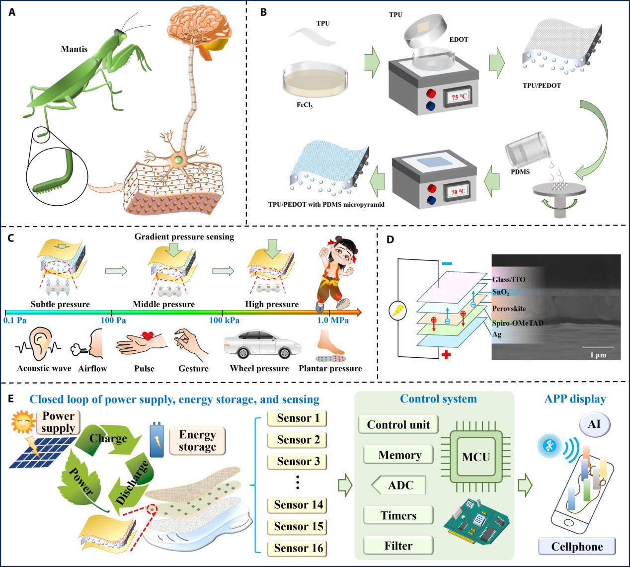 研究团队从大自然中找到了灵感。“螳螂捕食时,腿部既要感知猎物的微弱动静,又要承受自身快速移动的强大冲击。这种分级机械传感结构给了我们重要启发。”西安电子科技大学集成电路学部教授常晶晶说。