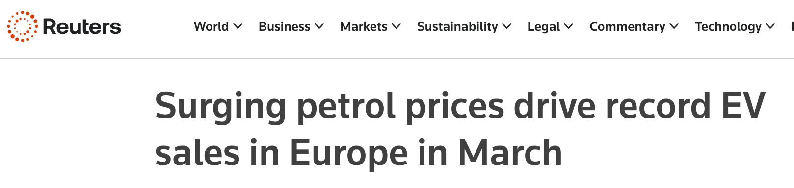 BMI表示,3月份全球纯电动和插电式混合动力新车注册量(销量代理指标)同比增长3%,超过170万辆;其中欧洲增长37%,达到近54万辆的月度历史新高。BMI数据经理Charles Lester表示,虽然汽车注册量滞后于销量,但“其中很大一部分可以归因于汽油价格上涨”。他补充称,在能源价格上涨最为剧烈的国家,增长最为强劲。
