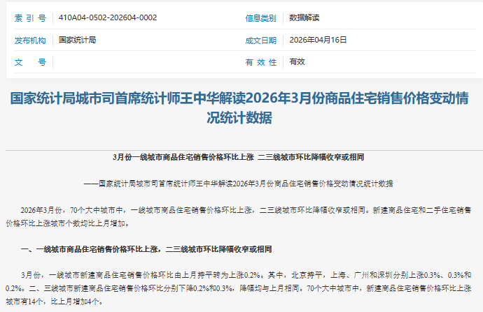 【环球网财经综合报道】4月16日,国家统计局发布的最新数据显示,3月份70个大中城市房价数据释放出明确的企稳信号。全国新房和二手房价格上涨城市个数大幅增加,其中一线城市新房与二手房价格环比双双“转正”,市场积极因素持续累积。