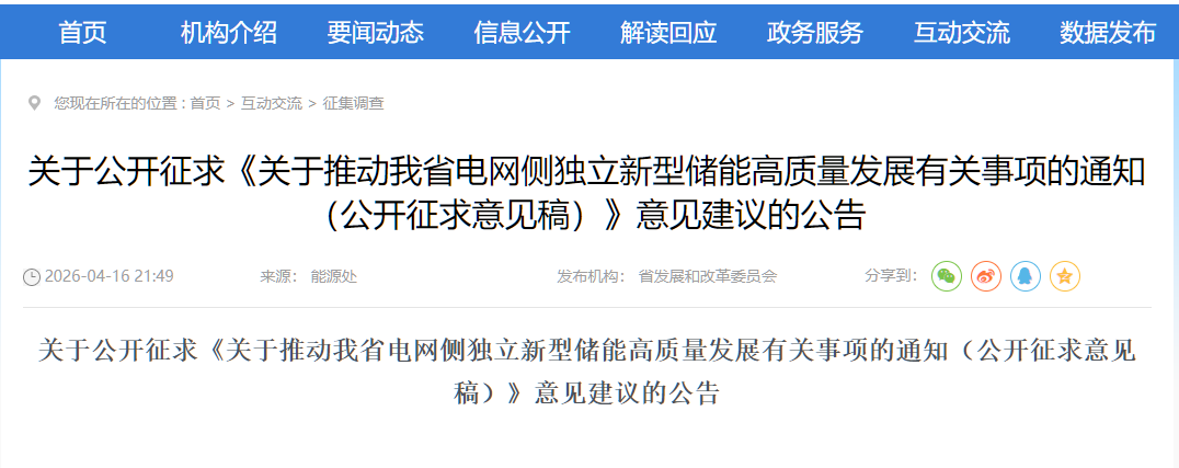 【环球网财经综合报道】4月16日,海南省发改委发布《关于推动我省电网侧独立新型储能高质量发展有关事项的通知(公开征求意见稿)》,拟从项目备案、电网接入、建设时限、退出机制等方面作出系统规范,征求意见时间为4月16日至4月30日。