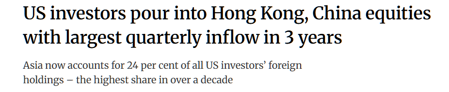 【环球网财经综合报道】据南华早报援引法国巴黎银行最新研究报告显示,美国投资者对中国内地及香港股市的情绪近期“明显转向积极”。2025年12月至2026年2月,合计约140亿美元资金流入中国内地及香港市场,创下三年多以来连续三个月资金净流入的最高规模。据此测算,本轮持续加仓后,美国投资者持有的中国内地及香港股票总规模已攀升至4660亿美元的历史高位。
