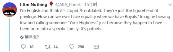 网友@AKA_Porlek表示:“作为英国人,我认为这种做法是愚蠢和过时的。王室只是特权的傀儡。当我们有王室成员时,我们怎么可能有平等?想象一下,你鞠躬并称呼某人为‘殿下’,只因他们碰巧出生在一个特定的家庭。这是可悲的。”