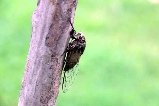 如果仔细观察我们就会发现,蝉有两对膜质的翅膀,它的翅脉很硬,当它休息时,翅膀总是覆盖在背上。蝉很少自由自在地飞翔,只有采食或受到骚扰的时候,才从一棵树飞到另一棵树。