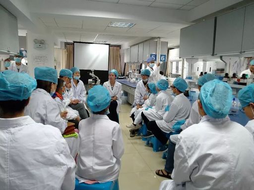 “没有华丽、没有喧嚣,只有真实、敬业、专业、真诚。我以为活体实验,就是老师示范一下,孩子们在旁边打打沾水,摆一下造型,父母照下相发一下朋友圈。可在Key Lab实验室完全不是这样,手机全部被收走,实验操作的每一个细节和步骤都由孩子自己完成,老师只是辅助。现场当然是相当混乱,孩子们在讨论阶段讲到自己犯下的错误,都从中吸取了相当的教训。孩子们从试错中体验式学习了真正的实验是如何进行的,从准备试验到操作哪些地方是可以改进的。”薛良在参加完《铁血细菌对白细胞的功能》的课程后感慨。