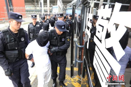 资料图:黑龙江省警方押解124名“5.6”特大系列电信诈骗案犯罪嫌疑人抵达哈尔滨,该诈骗团伙涉案金额达7000余万元、被害人遍布全国10余个省(直辖市)。中新社记者 于琨 摄