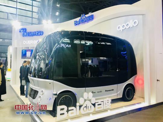 这款百度无人驾驶车,是今年7月4日在第二届百度AI开发者大会上正式量产的无人驾驶车“阿波龙”。记者了解到,“阿波龙”车身长4.3米,宽2米,共8个座位,核载14人(含6个站位)。采用纯电动动力系统,最高时速可达120公里,满电情况下可以行驶约100公里。王婉莹/摄