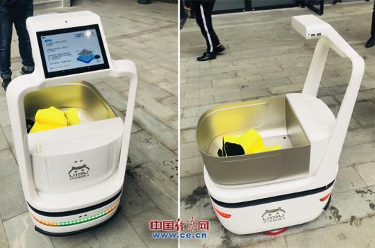 远传技术智能购物车“小跟班”,可以自己跟着“主人”跑。据了解,每台“小跟班”可载重30公斤,广泛应用于机场高铁站行李搬运、超市导购等递送服务,在户外使用时还可以太阳能自主充电,节能环保。王婉莹/摄