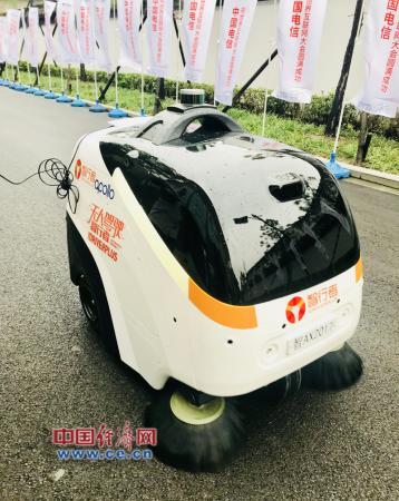 智行者无人驾驶扫路车“蜗小白”,可以实现自动避障、自主循迹、定点起停、自主扫地等智能功能,操作人员在值班室可对无人驾驶扫路机进行安全监控。王婉莹/摄