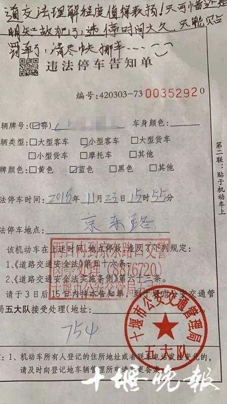 在贴完告知单后,交警又给当事人打了电话,当事司机在电话里表示歉意地说道:“其实知道肯定会被贴,昨天就已经停在这儿了,一直没有拖车来拖,所以抱着侥幸心理留个字条,希望能够躲过一罚。”