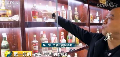 老酒收藏爱好者 朱军:这是1988年的五粮液,当时的价格是八十元钱,到今天,它的价格是六千元钱以上。