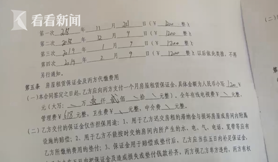 小张租住的房屋总共有四间卧室,从小张提供的租房合同可以看到,小张所租的房间为厅卧,每月租金1200元,算上押金和中介费,小张总共支付了三千多元,而小张只想拿回一千多元押金也被中介拒绝了。