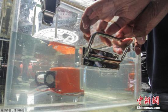 11月1日上午,印尼国家联合搜救队打捞出失事飞机黑匣子中的飞行数据记录仪(FDR)。