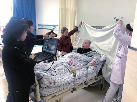 “如果他能站起来,我们可以利用病房的白墙帮他拍照,但他瘫痪在床,几乎无法下床。”韩璐说,随后她便想法让王琦坐在病床上,用医院的白色床单当背景进行拍照。“他能坐正,但头不由自主地就偏向一侧。头部不端,拍下来的照片就无法录入系统中。”韩璐说,考虑到王琦的身体情况,只能尝试几次就让他休息一下,前后折腾了一个小时才采集完信息,并为他办理了邮递手续。