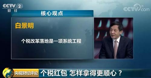 中国财政科学研究院副院长 白景明:个税改革在落地的过程当中会难免出现一些问题,这些问题反映出个税改革需要全社会共同努力。