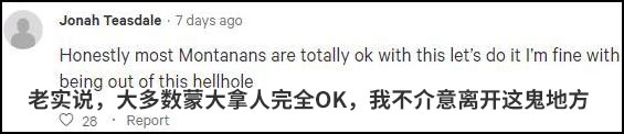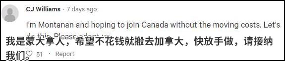 出乎预料的是,该请愿下大多数人似乎都支持这个决定,评论区的高赞评论都显示美国人支持该想法,除了蒙大拿州居民,还有人表示“现在就打包行李,搬家去蒙大拿”。