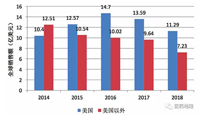 他达拉非核心化合物专利的优先权日期为1994年1月21日,其同族专利在未设有专利延期制度的国内或地区均于2015年内届满。尽管如此,2015年Cialis全球销售额同比上升1%,虽然美国以外的市场销售额同比降低16%(图1所示),但礼来制药将其归因于不利的汇率。