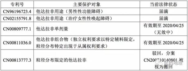 2019年1月7日,国家知识产权局专利复审委员会做出第38604号无效决定,宣告礼来制药他达拉非单剂量制剂专利(ZL00809777.1)权利要求全部无效,虽然距离该专利正常届满只剩1年多的时间,而且专利权人仍然有提出上诉的可能性,但该无效决定的做出也为制剂专利审查、复审与无效提供了经验与借鉴,并预示着他达拉非可能全面进入仿制药时代。