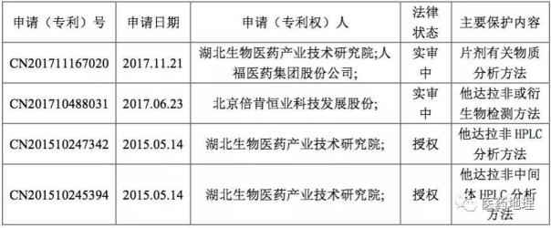 原研方及其相关方在中国申请的他达拉非相关专利如表3所示。