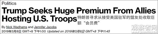 原标题:他想问我们收全额驻军费,再加50%“会员费”