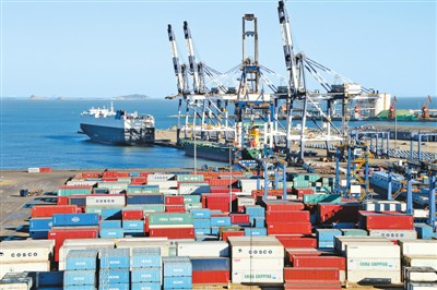 2019年1月28日,山东烟台港集装箱码头一片繁忙。唐 克摄(人民视觉)