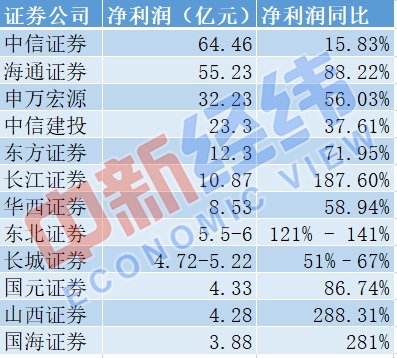 据中新经纬客户端统计,截至7月31日收盘,目前共有12家上市券商公布业绩快报,无一家净利润下滑。