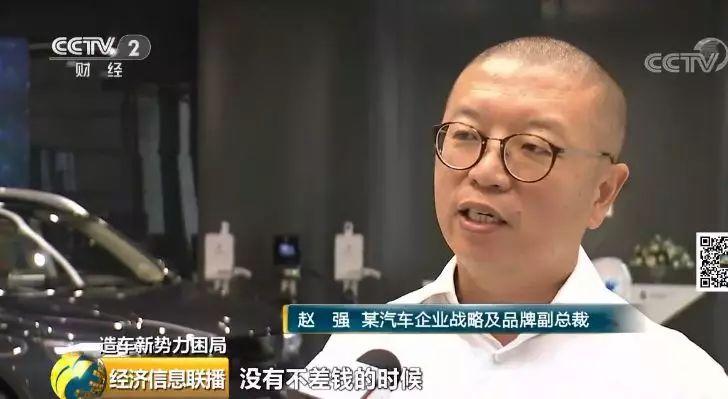 某汽车企业战略及品牌副总裁 赵强:我相信大家都差钱,没有不差钱的时候。因为做生意,一定是要以赚取利润为上,不在今天赚,就要在明天赚。 赵强说,公司成立5年来,储备了新能源汽车领域大量先进的智能化技术,却从来没有一次性储备过长期的发展资金。 而根据阶段发展的状况,再去找融资,这几乎是新势力造车公司的共有特点。 某汽车企业战略及品牌副总裁赵强:这个市场并不缺少一个新晋品牌。从去年开始,不管内燃汽车还是电动汽车,几乎都在滑坡,有的非常严重。不差钱、不缺钱是不可能的事情。但是,在一个阶段所需要的钱足够用就可以了。 2018年,纯电动汽车占有率排名第一的特斯拉在亏损了15年之后,首次转亏为盈。而造车新势力重资产、生产周期长、研发占比高的共性,使得他们不得不去面对短期难以盈利这个难题。 作为造车新势力的头部企业,蔚来汽车在2019年一季度,净亏损达到6.236亿元,同比再次增加71.4%。近三年来,蔚来已累计亏损将近200亿元。 头部企业尚且如此,追随者要想短期盈利更是不易。 目前,国内的造车新势力企业大多成立在5年以内,仍全面投入大于产出。 专家分析,新能源汽车目前在全球汽车市场份额还不足5%,国内数十家新势力造车企业在电动化和智能化的巨大变革中,风险和机会同样很大。