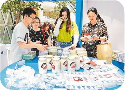 不久前,“大白兔”60周年快闪店亮相上海凯德晶萃广场,吸引了不少市民游客前来打卡。快闪店不仅提供多种口味的大白兔奶茶,现场还有抱枕、香水、环保袋、文件夹等多款文创产品出售。图为消费者在挑选商品。
