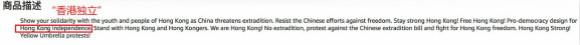 人民网北京8月15日电(黄钰 席莉莉 实习生陈思睿)8月14日,有网友爆料称美国电商企业亚马逊在其平台上公然销售“港独”T恤,上面赫然印着“香港独立”等字样。